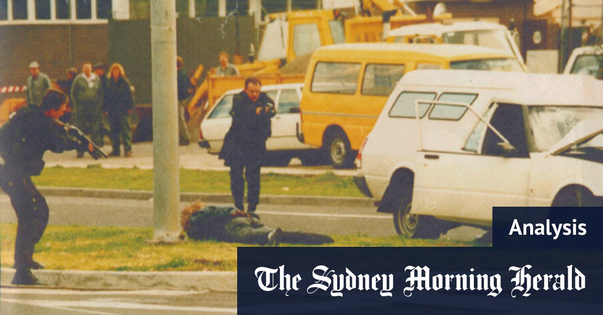 Special Operations Group police arrest Stephen Asling after three bandits tried to escape with $1million from the Melbourne Airport in 1992. One of the bandits, Normie Lee, was shot dead.