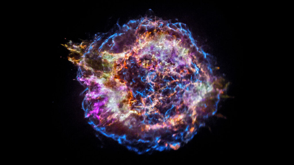 “[The water’s] concentration in dense structures, that to me is the game changer,” Whalen says. “The total overall mass of water being formed, it’s not that much. But it becomes really concentrated in the dense cores, and the dense cores are the most interesting structures in the remnant, because that’s where new stars and planets can form.”