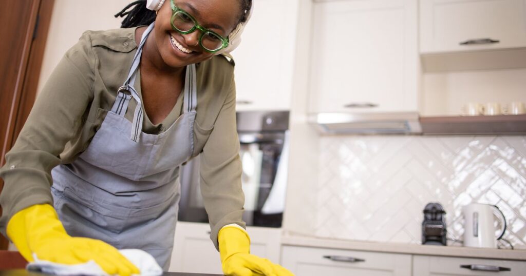 “The people who’ve told me they have trauma about cleaning have usually said… ‘It took all Saturday and I could never do anything with my friends,’ and I’m like, did you just need to put a time limit on it?” he said. “And then when you decide, ‘When I’m done listening to the podcast, I’m done cleaning, and that’s it,’ [you’re freed]. And if it means that the living room doesn’t get vacuumed, then guess what? The living room doesn’t get vacuumed. Only God sees under the sofa anyway. It’s fine.”