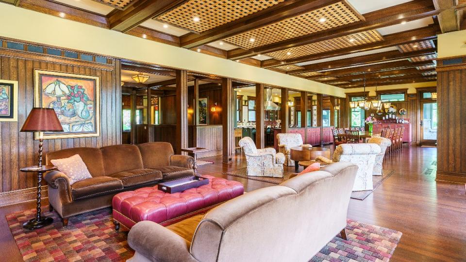 In true Arts & Crafts tradition, the home has gabled roofs, overhanging eaves, and natural stone and wood siding. There are many period-specific details, despite the home being built in the early aughts, including stained-glass windows, custom woodwork, built-in furniture, and hardwood floors. Set on an incredibly lush 66 acres of wild land, the property boasts a residence that spans 13,286 square feet and has 12 bedrooms, eight full bathrooms, and two powder rooms.