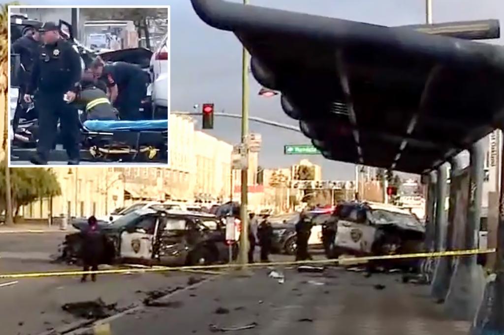 At least three officers and one civilian have been hospitalized after a multi-vehicle car accident in Oakland, Calif., according to reports.