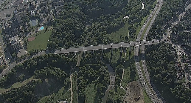 After suicide attempts became a common occurrence on the Bloor Viaduct, the city erected suicide barriers on it in 2003. The Leaside Bridge isn’t that far away and despite its long span and access to pedestrians, its railings aren’t blocked off. Calls to erect barriers there have been brought up over the years, including in the wake of suicide attempts that have shut down traffic on the DVP.