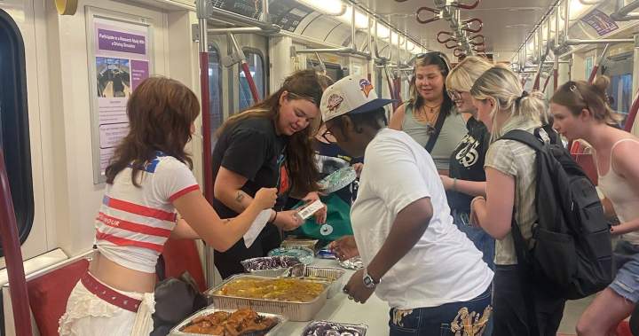 The subway feast wasn’t just a one-off stunt, according to Petraglia, who plans to do another one in a few months. “I love gathering people over food,” she said. “Everyone on the TTC is in their own little world. I wanted to get people out of that and talking to one another.”