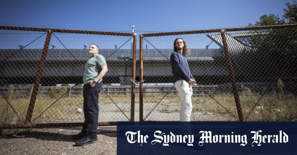 Eddie Solomon and Patrick Davis stand in front of land earmarked for an eight-storey development in Murrumbeena Village.Credit: Photograph by Chris Hopkins