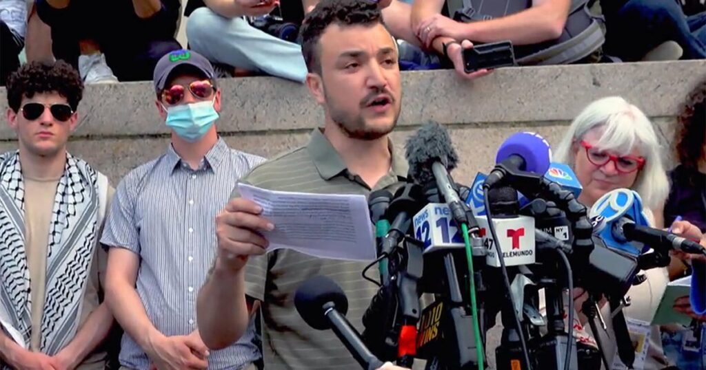 The document accused Khalil of immigration fraud, claiming that he failed to disclose his work or involvement with UNRWA, the United Nations agency for Palestine refugees; the British embassy in Beirut; and a group known as Columbia University Apartheid Divest in his green card application.