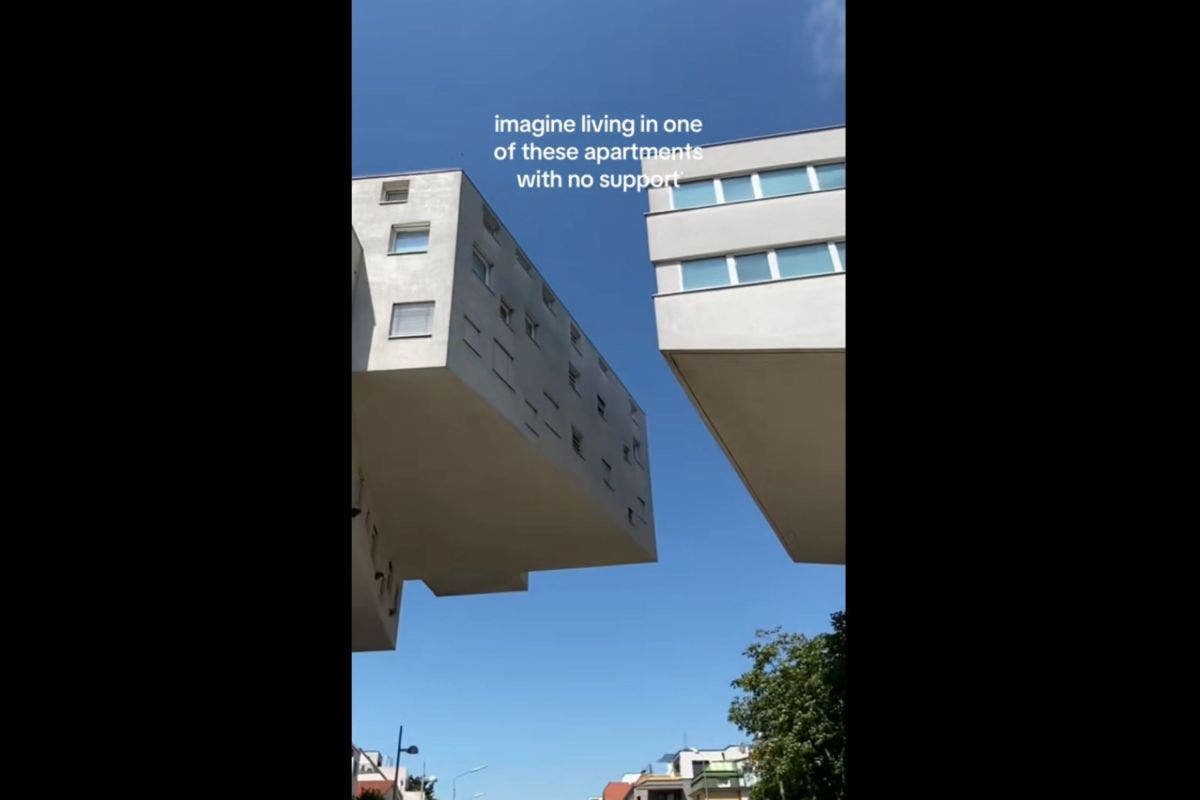 The video, posted by TikTok user @edgyonedge, features a row of modern apartments in Austria’s capital that seem to hover in mid-air without any visible support beneath them. The clip has amassed over 615,000 views since it was shared on July 5.