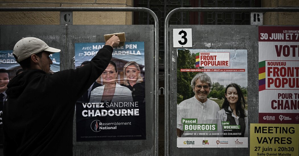 Polls suggest that a likely scenario is a lower house roughly divided into three blocs with conflicting agendas and, in some cases, deep animosity toward one another — the National Rally, the New Popular Front, and a reduced centrist alliance including Mr. Macron’s Renaissance party.