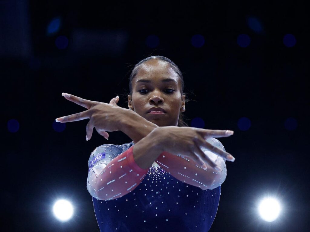 Shilese Jones, a 21-year-old from Seattle and the United States’ second most-decorated gymnast since 2021 (behind only Biles). Though Jones competed at the 2021 Olympic Trials, her status truly skyrocketed in 2022. Since becoming a two-time U.S. Champion that year, Jones has tallied two top-three all-around finishes at the world championships, two team gold medals, and two medals on the uneven bars.