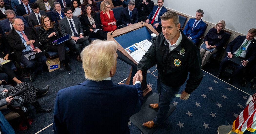 On Sunday, Mr. Duffy also criticized the Biden administration for changing some aviation terms such as cockpit and Notice to Airmen — the system notifying air industry members of potential hazards — to more gender-neutral terms such as flight deck and Notice to Air Mission. He suggested without offering evidence that such changes had shifted focus away from ensuring the highest levels of aviation safety.