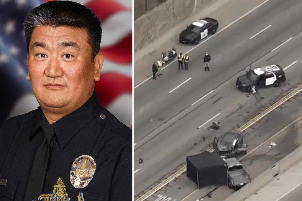 Shiou Deng, a nearly 30-year veteran of the force, was investigating a previous accident in the center divider on the 405 Freeway around 2:18 a.m. Monday when a passing car slammed into him from behind, according to the department.