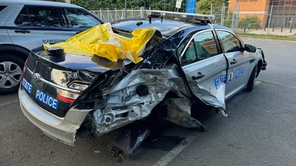 Dashcam footage from the trooper’s patrol vehicle showed the incident, which “amazingly” only left the trooper with minor injuries, police said. She was taken to Fairfax INOVA Hospital to be evaluated.