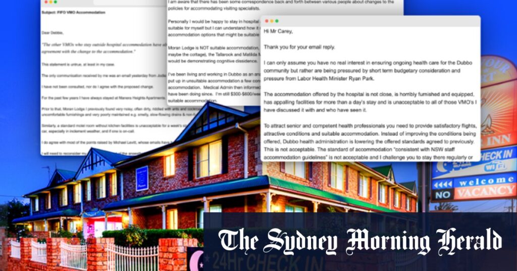 Western NSW Local Health District emailed visiting medical offers (VMOs) last week informing them that the hospital would only house temporary staff in apartments, units and a motel owned by the hospital, and would no longer pay for the accommodation of their choice.