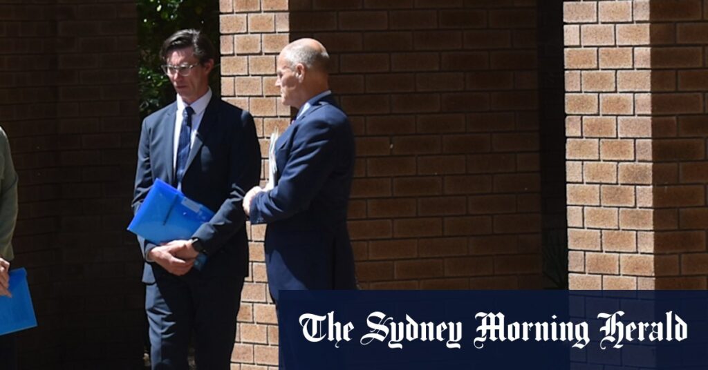 Lee Headland and his lawyer outside court.Credit: Hannah Murphy