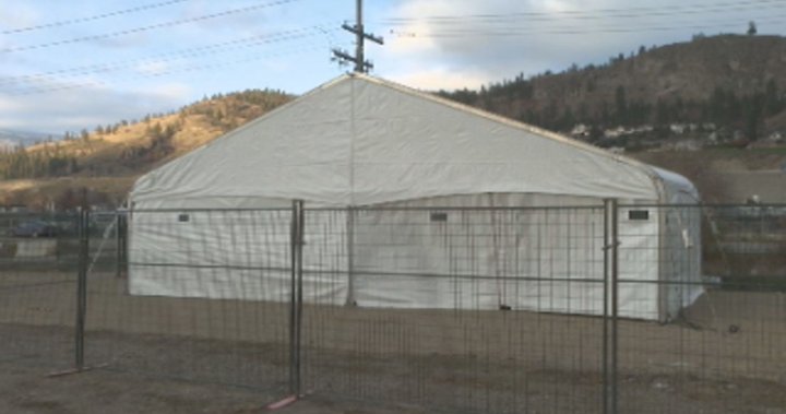 The warming tent, which is part of a pilot project, will be stationed at Kelowna’s Tent City along the rail trail. The area is home to 56 per cent of the city’s homeless population.