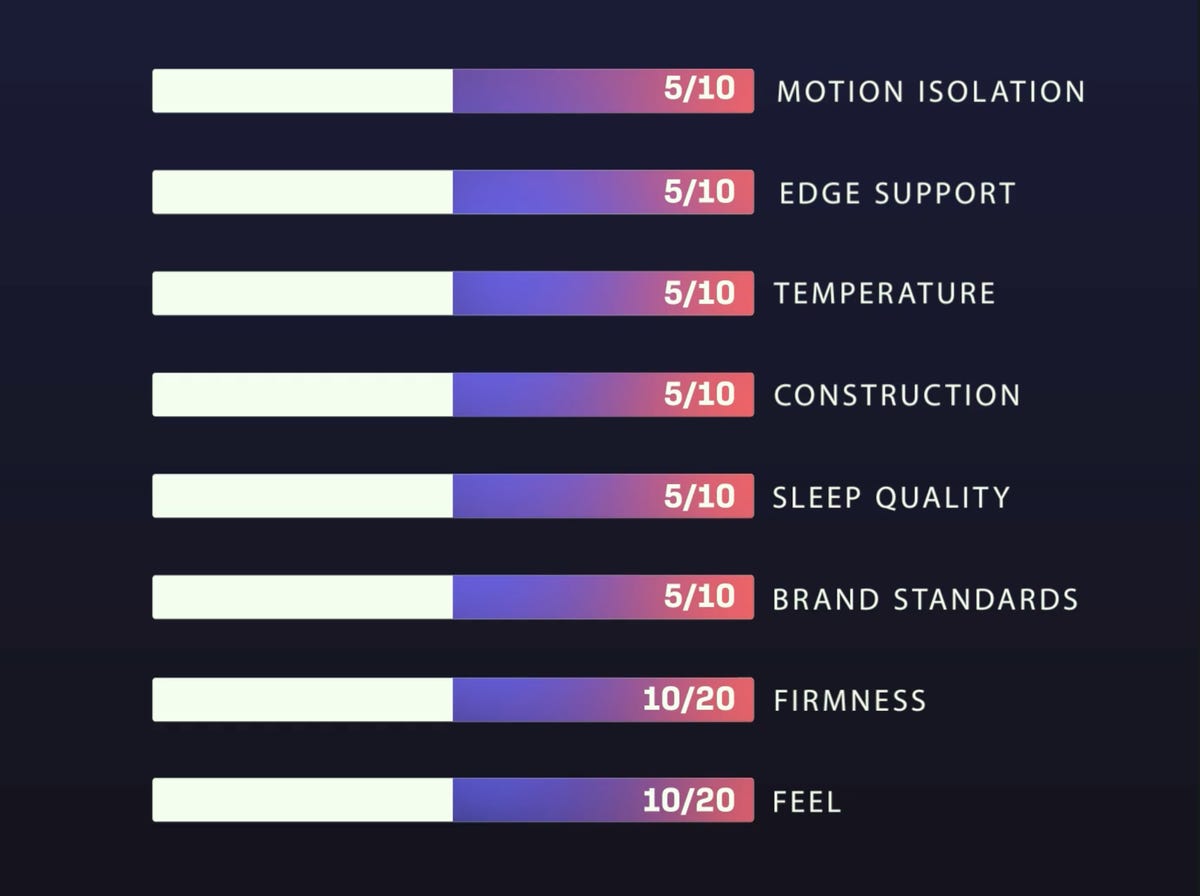 Motion isolation, edge support, temperature, construction, brand standards and sleep quality