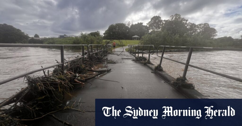 Flooding at Wolverhampton Bridge at Kedron Brook on Tuesday.Credit: Anna Campbell