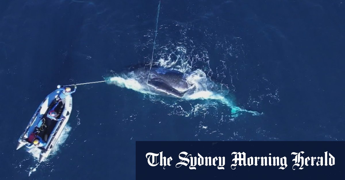 A rescue mission has unfolded off Rottnest Island, with a 12 metre humpback whale tangled in fishing line.