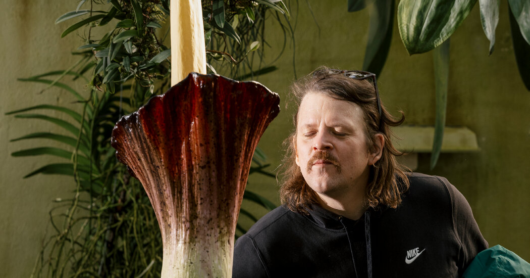 Andrew Orner visited the garden on Friday with Matt Gorman, a friend and fellow product manager. Mr. Orner described the odor as similar to that of “briny, dead fish.” But he was glad to experience it nonetheless. “There aren’t many scent experiences —” he continued, and Mr. Gorman jumped in, “intentional scent experiences.”