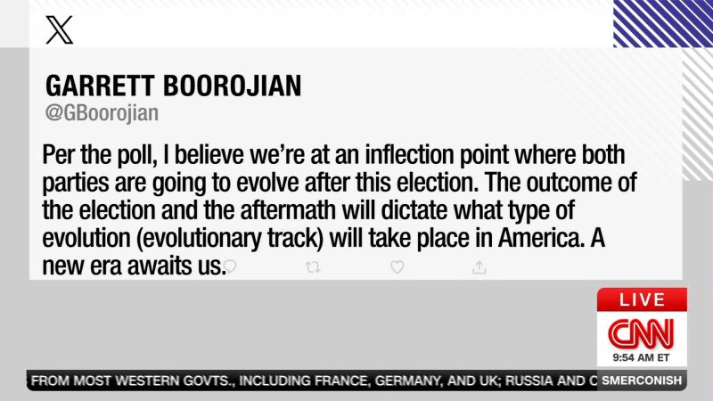 To a viewer tweet suggesting “We’re at an inflection point where both parties are going to evolve after this election,” Smerconish responds,”I hope that’s the case. I don’t know…..I look at it as the latest incarnation of a lot of the same sentiments that we saw in the Tea Party movement.”