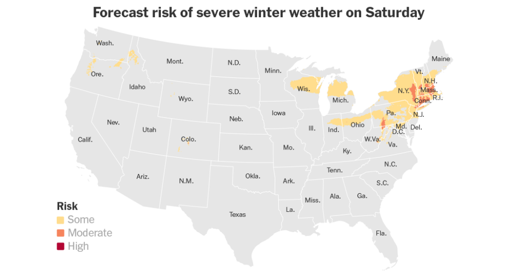 “Some of the heavier totals forecast are around the Albany area in New York and across southern Vermont and New Hampshire and into a good portion of Massachusetts, including Boston,” said Bob Oravec, a meteorologist with the National Weather Service.