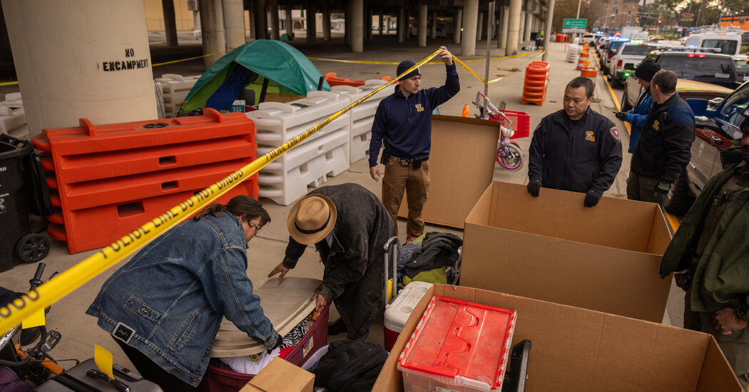 In the frigid early morning darkness on Wednesday, Louisiana State Police officers went tent to tent in an encampment that had sprouted beneath an overpass in the heart of New Orleans. The residents needed to pack, the officers told them. Buses were waiting to carry them to temporary accommodations.