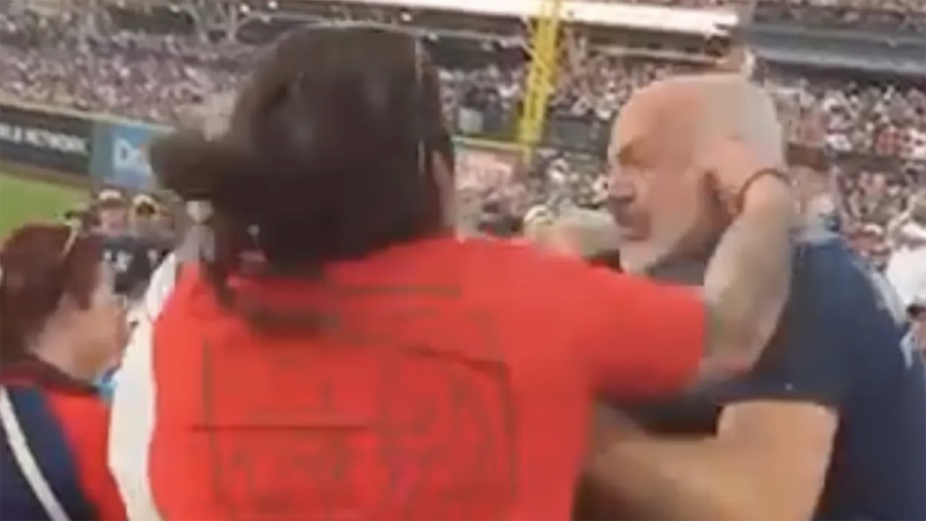 The videos were taken by another fan in the section, not associated with either party involved in the fight. However, the fan shared the videos with Pierce after the blonde woman and her partner were escorted out of the game by security.Â