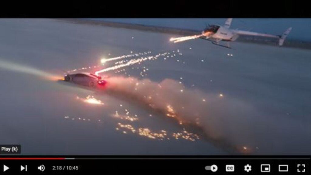 The 11-minute video, which is no longer posted on his social media accounts, appears to show the helicopter chasing the speeding vehicle while shooting the fireworks in its direction.Â