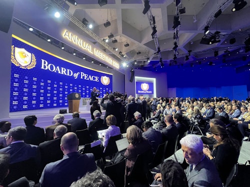 Donald Trump is addressing a ceremony launching the Board of Peace, with around 35 governments already signing up to join – among them Israel, Saudi Arabia, the United Arab Emirates, Bahrain, Jordan, Qatar and Egypt, and NATO members Turkiye and Hungary.